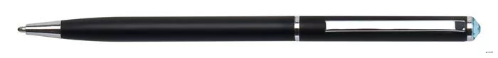 Golyóstoll, fekete 'SLIM', aquakék SWAROVSKI® kristállyal, 13 cm, ART CRYSTELLA®