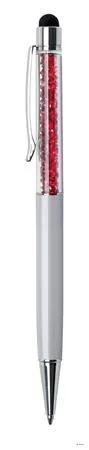 Golyóstoll, krémfehér, felül siam piros SWAROVSKI® kristályokkal töltve, TOUCH, 14 cm, ART CRYSTELLA®