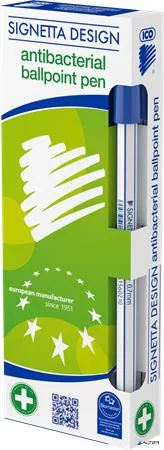 Golyóstoll, 0,7 mm, kupakos, antibakteriális, ICO "Signetta", kék