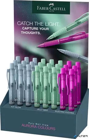 Golyóstoll display, 1 mm, XB, nyomógombos, FABER-CASTELL "Poly Ball View Aurora", vegyes színek