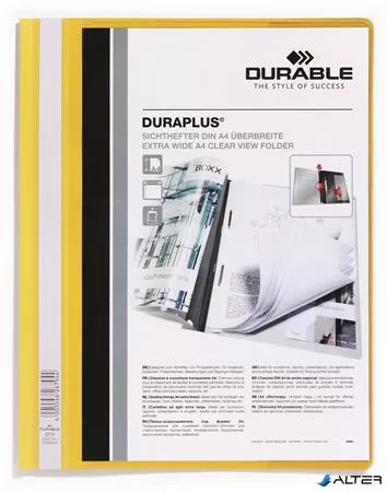 Gyorsfűző, A4, széles, panorámás, DURABLE 'DURAPLUS®', sárga