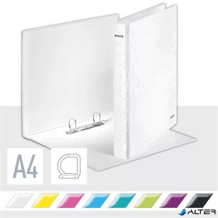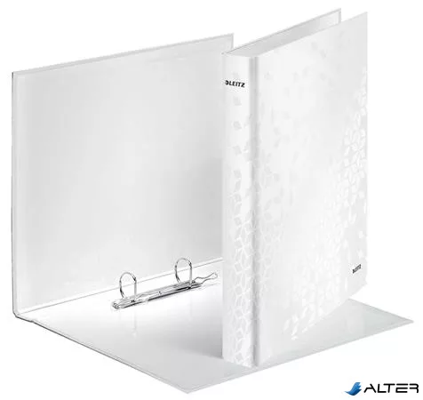 Gyűrűs könyv, 2 gyűrű, D alakú, 40 mm, A4 Maxi, karton, LEITZ "Wow", fehér