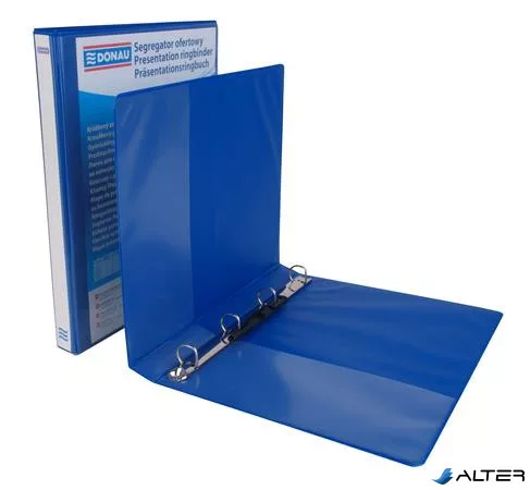 Gyűrűs könyv, panorámás, 4 gyűrű, D alakú, 44 mm, A4, PP, DONAU, kék