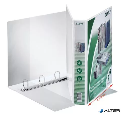 Gyűrűs könyv, panorámás, 4 gyűrű, D alakú, 51 mm, A4 Maxi, PP, LEITZ, fehér