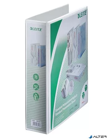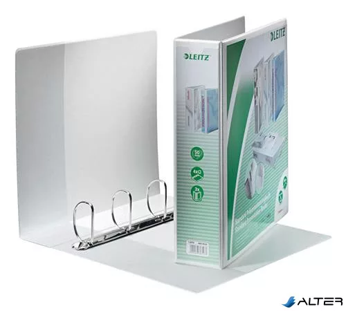 Gyűrűs könyv, panorámás, 4 gyűrű, D alakú, 77 mm, A4 Maxi, PP, LEITZ, fehér