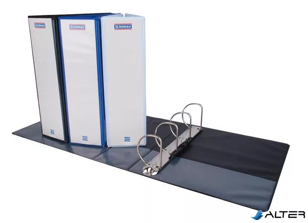 Gyűrűs könyv, panorámás, 4 gyűrű, D alakú, 80 mm, A4, PP, DONAU, fekete
