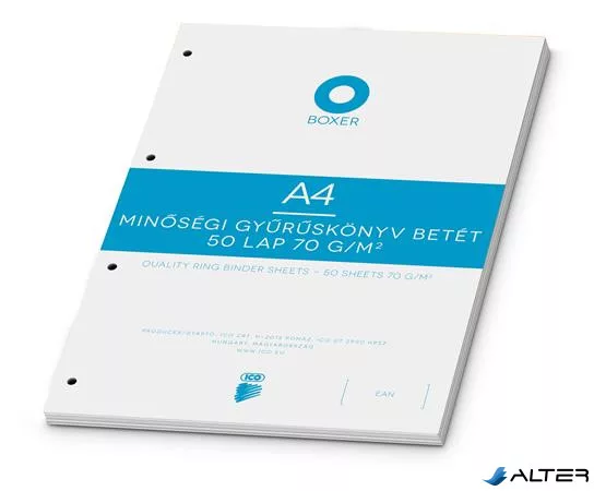Gyűrűs könyv betét, A4, kockás, 50 lap, BOXER, fehér