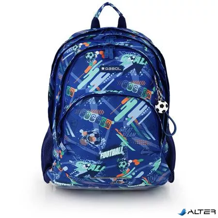 Hátizsák, iskolatáska, cipzáras, GABOL "Crew", kék, foci