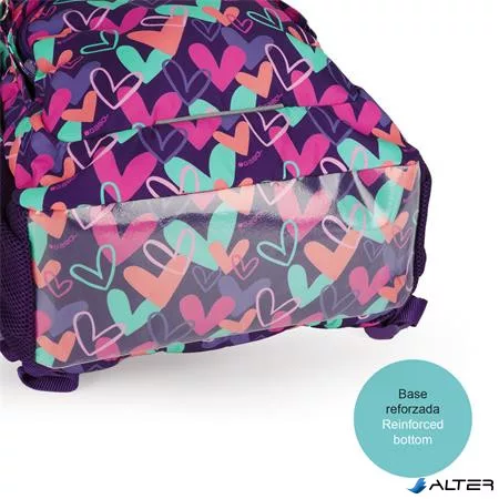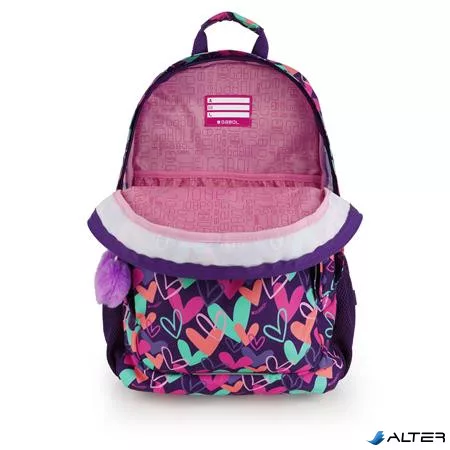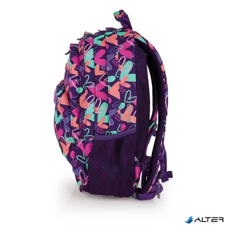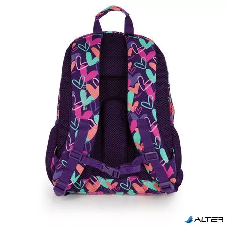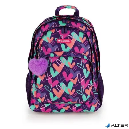 Hátizsák, iskolatáska, cipzáras, GABOL "Kokoro", lila, szívek