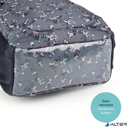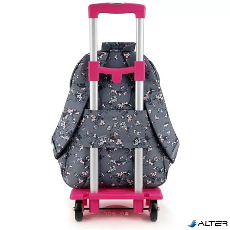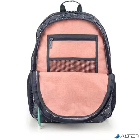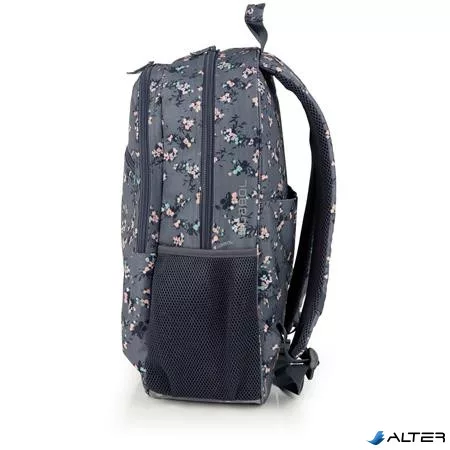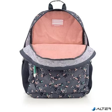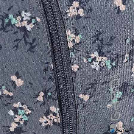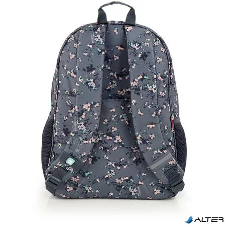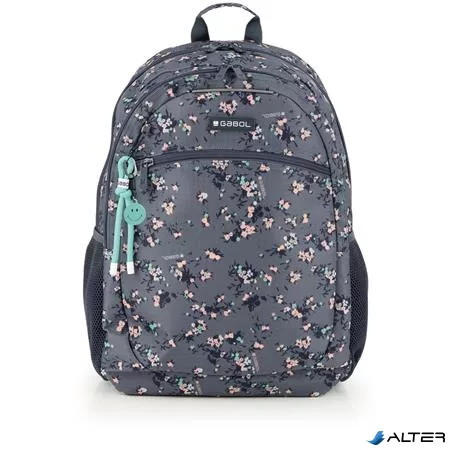 Hátizsák, iskolatáska, cipzáras, GABOL "Secret", szürke, virágmintás