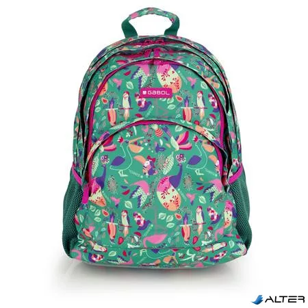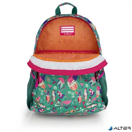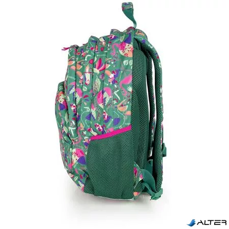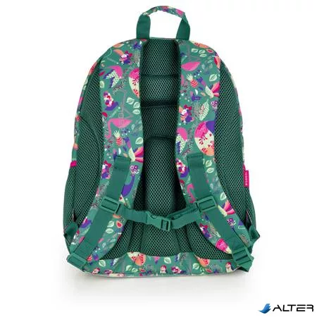 Hátizsák, iskolatáska, cipzáras, GABOL "Vida", zöld, trópusi mintás