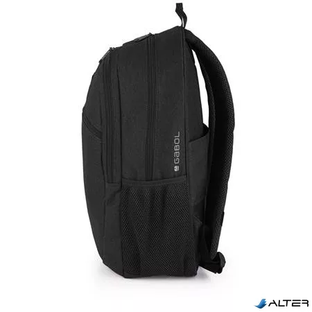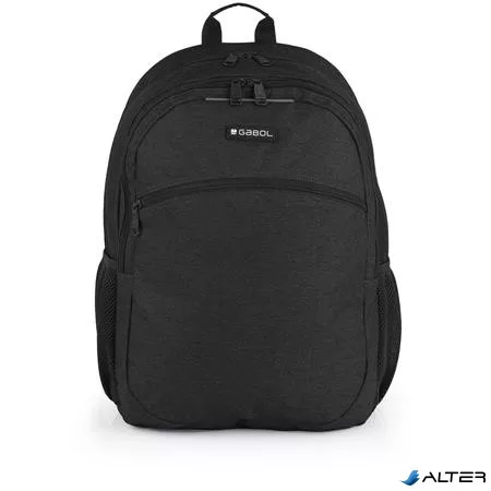 Hátizsák, iskolatáska, notebook tartóval, cipzáras, GABOL "Wolf", fekete