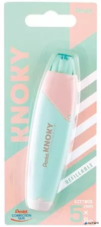 Hibajavító roller, 5 mm x 6 m, utántölthető, PENTEL 'Knoky', világoszöld-barack
