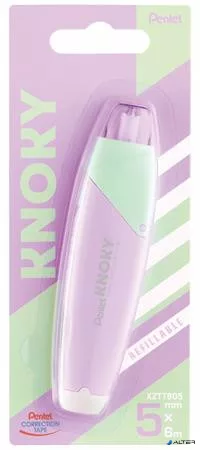 Hibajavító roller, 5 mm x 6 m, utántölthető, PENTEL 'Knoky', világoszöld-lila