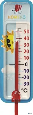 Műanyag színes iskolai hőmérő amely segít a gyerekeknek elsajátítani a hőmérséklet mérésének alapjait.