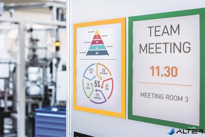 DURAFRAME® MAGNETIC a mágneses infokeret, amely alkalmas figyelmeztetések, dokumentumok, jelölések és információk kihelyezésére többféle méretben.