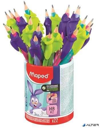 Írástanuló grafitceruza radírral, ceruzatartó, HB, háromszögletű, ceruzafogóval, MAPED 'Kidy Learn', vegyes színek