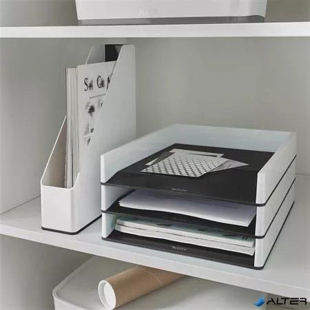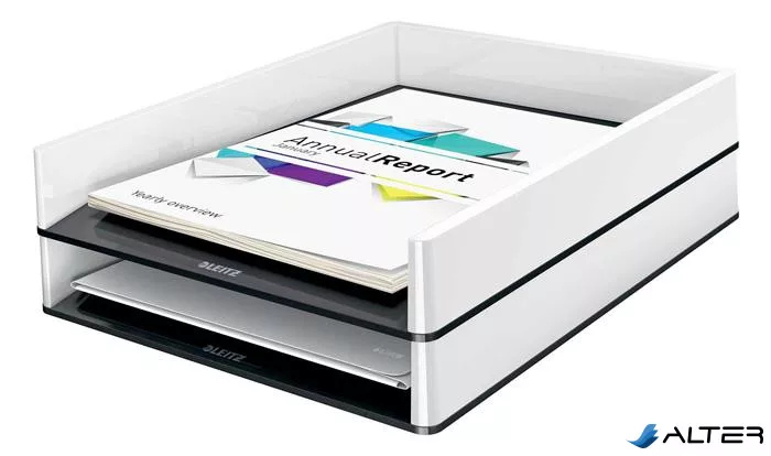 - szembetűnő, prémium minőségű, kettős színhatású Leitz irattálca fényes felülettel