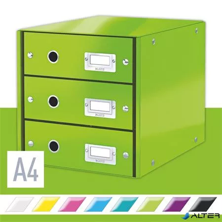 Irattároló, laminált karton, 3 fiókos, LEITZ "Click&Store", zöld