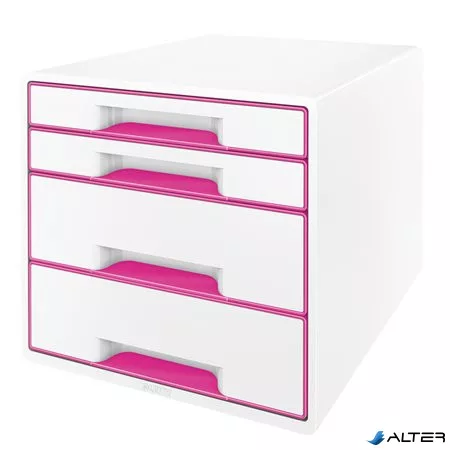 Irattároló, műanyag, 4 fiókos, LEITZ "Wow Cube", fehér/rózsaszín