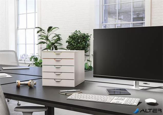 Elegáns irattároló 5 színes fiókkal, melyek segítik a rendszerezést és a tájékozódást.