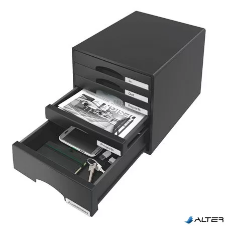 Irattároló, műanyag, 5 fiókos, LEITZ "Plus", fekete