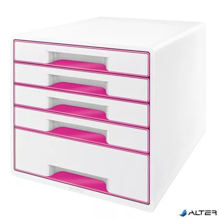 Irattároló, műanyag, 5 fiókos, LEITZ "Wow Cube", fehér/rózsaszín