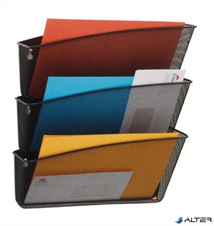 Irattartó, fali, fémhálós, 3 zsebes, ALBA, fekete