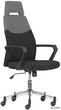 Irodai forgószék, króm lábkereszt,fejtámasz, "Sterling", fekete-szürke