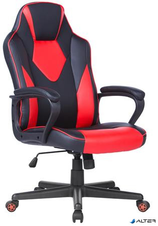 Irodai forgószék, mesh-textilbőr borítás, fekete lábkereszt, párnázott karfa, "Newdale", fekete-piros