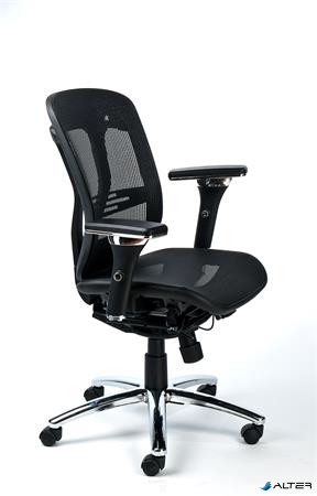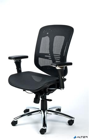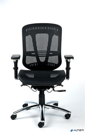 Irodai szék, állítható karfás, hálós ülőlap, hálós háttámla, alumínium lábkereszt, MAYAH "Flow"