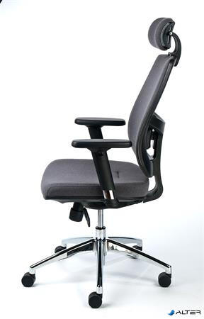 Irodai szék, állítható karfával, szürke szövetborítás, alumínium lábkereszt, MAYAH "Grace"