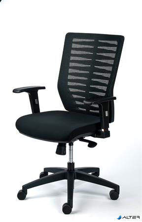 Irodai szék, fekete szövetborítás, feszített hálós háttámla, fekete lábkereszt, MAYAH "Superstar"