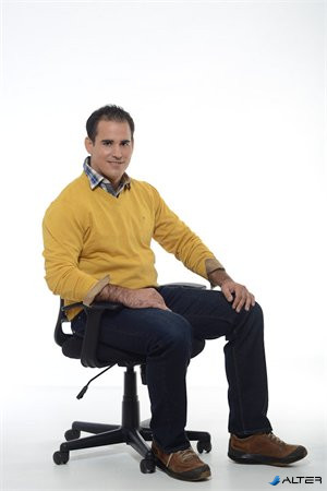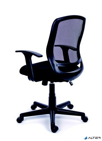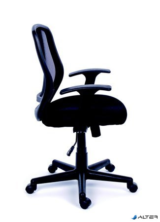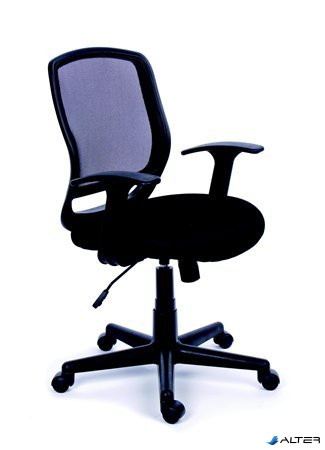 Irodai szék, karfás, fekete szövetborítás, feszített hálós háttámla, fekete lábkereszt, MAYAH "Fun"