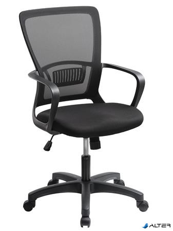 Irodai szék, karfás, fekete szövetborítás, feszített hálós háttámla, fekete lábkereszt, MAYAH "Vega", fekete