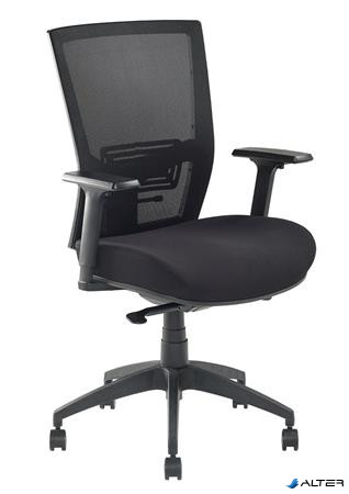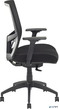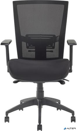 Irodai szék, karfás, fekete szövetborítás, feszített hálós háttámla, fekete lábkereszt, MAYAH "Radar III", fekete