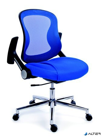 Irodai szék, karfával, kék szövetborítás, feszített hálós háttámla, króm lábkereszt, MAYAH "Spirit"
