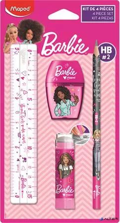 Írószer készlet, 4 darabos, MAPED "Barbie"