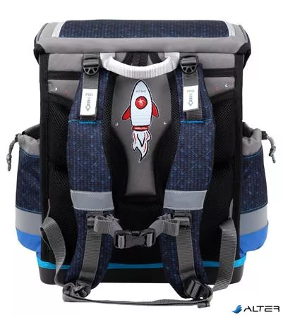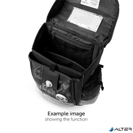 Praktikus kialakítás: Több rekesz és oldalzseb segíti a rendszerezett pakolást, így minden iskolai eszköz könnyen elérhető és biztonságosan tárolható.