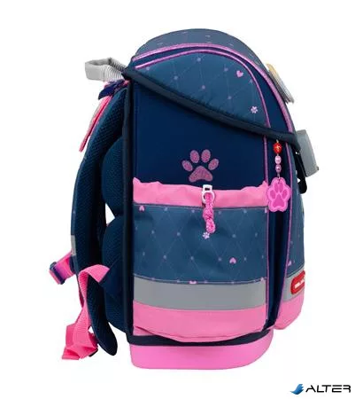Praktikus kialakítás: Több rekesz és oldalzseb segíti a rendszerezett pakolást, így minden iskolai eszköz könnyen elérhető és biztonságosan tárolható.