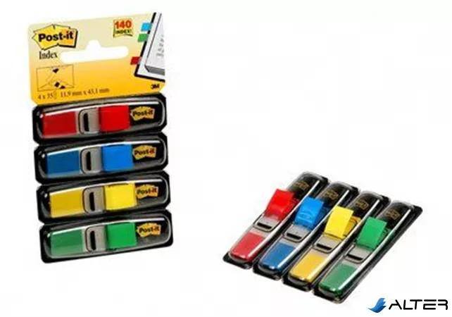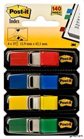 Jelölőcímke, műanyag, 4x35 lap, 12x43 mm, 3M POSTIT, vegyes