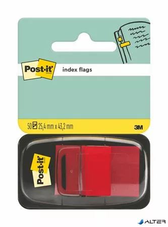 Jelölőcímke, műanyag, 50 lap, 25x43 mm, 3M POSTIT, piros