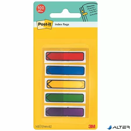Jelölőcímke, műanyag, 5x20 lap, 11,9x43,2 mm, nyíl, 3M POSTIT, vegyes