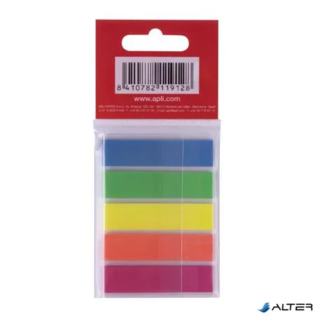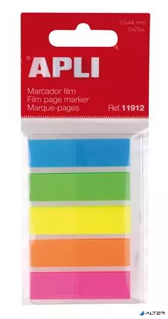 Jelölőcímke, műanyag, 5x25 lap, 12x45 mm, APLI, 5 szín