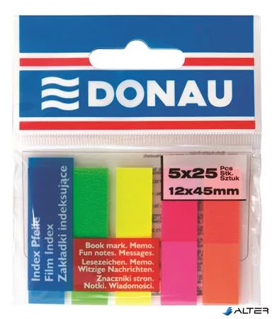 Jelölőcímke, műanyag, 5x25 lap, 12x45 mm, DONAU, neon szín