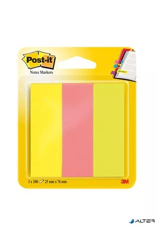 Jelölőcímke, papír, 3x100 lap, 25x76 mm, 3M POSTIT, vegyes neon színek