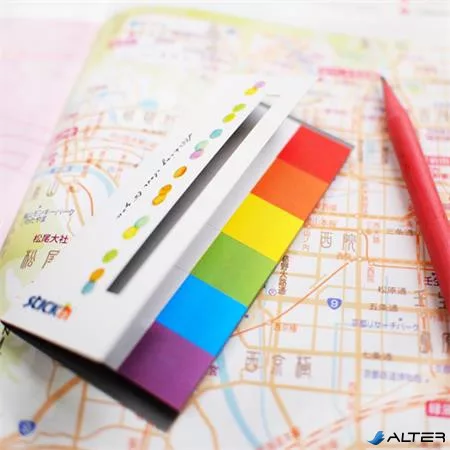 Jelölőcímke, papír, 7x30 lap, 45x15 mm, STICK N, szivárvány színek