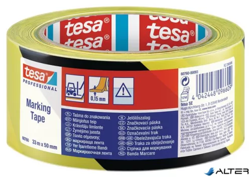 Jelölőszalag, 50 mm x 33 m, TESA "Professional" fekete/sárga