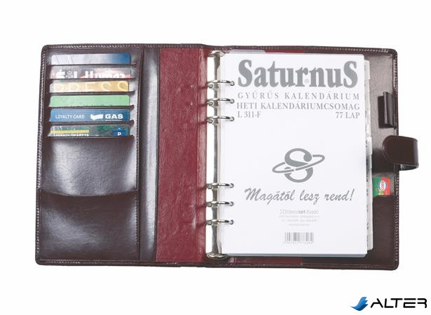 Kalendárium, gyűrűs, betétlapokkal, 'M', újrahasznosított bőr, SATURNUS, '418', barna