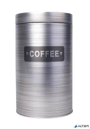 Kávétartó doboz, fémhenger, szürke, 11x18 cm